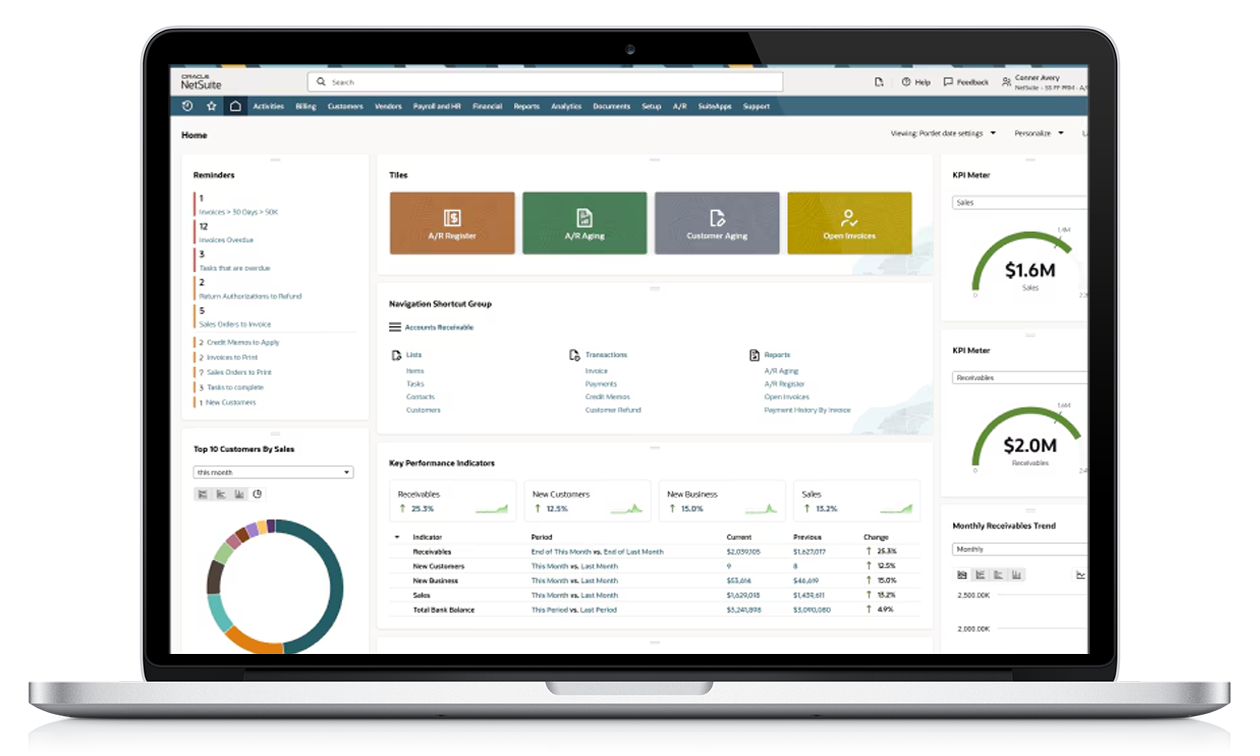 Advanced NetSuite dashboards and reporting setup providing real-time analytics, KPIs, and financial insights to help leadership make smarter, data-driven decisions.
